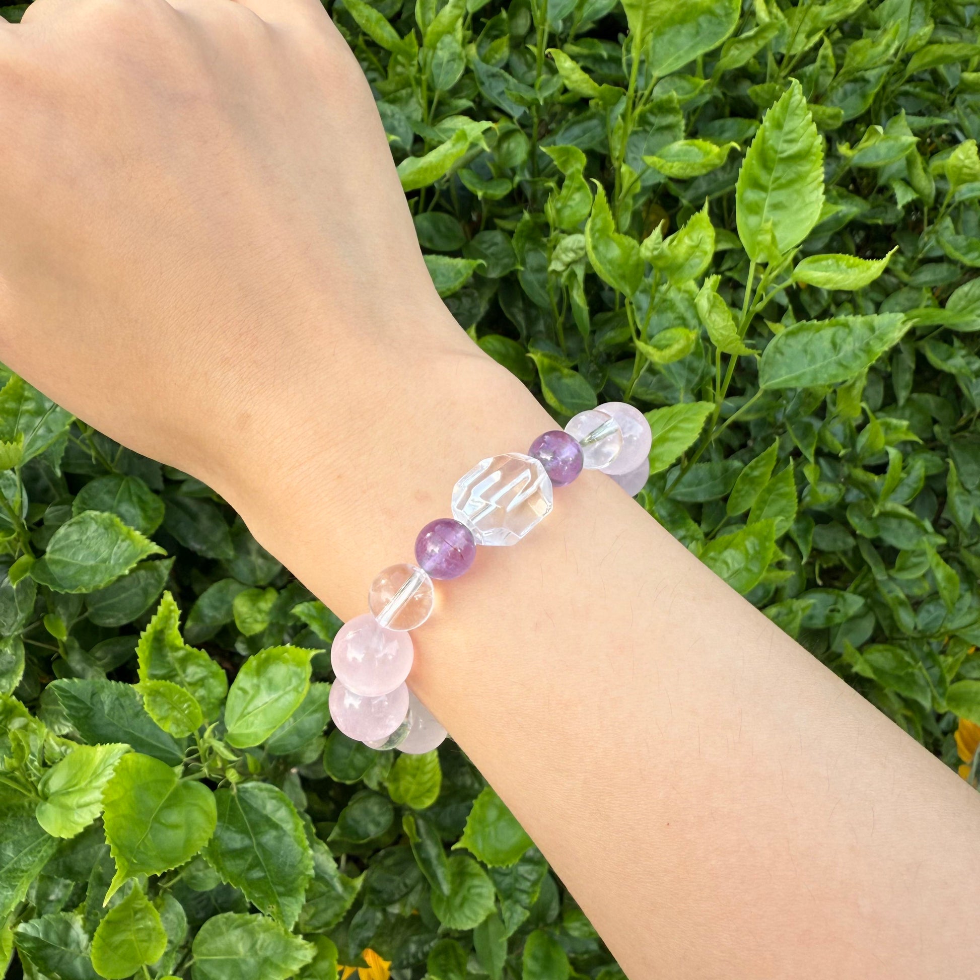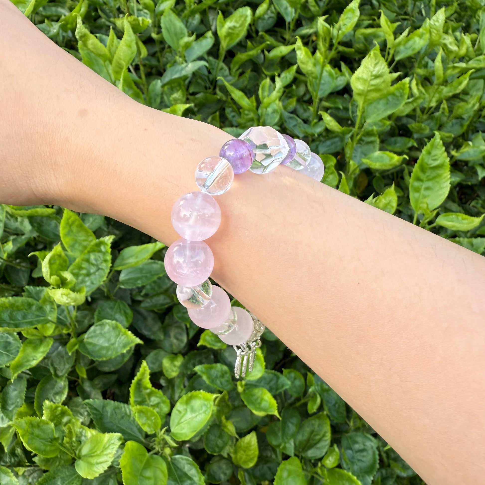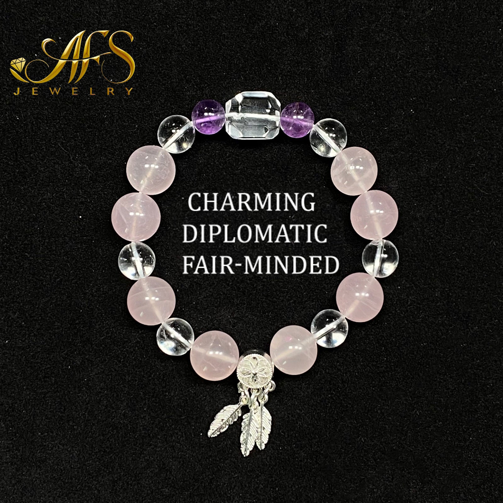 AFS Crystal Bracelet for Harmony Love & Balance Rose Quartz Clear Quartz & Amethyst Jewelry for Relationships Inner Peace Charming Gift for Her