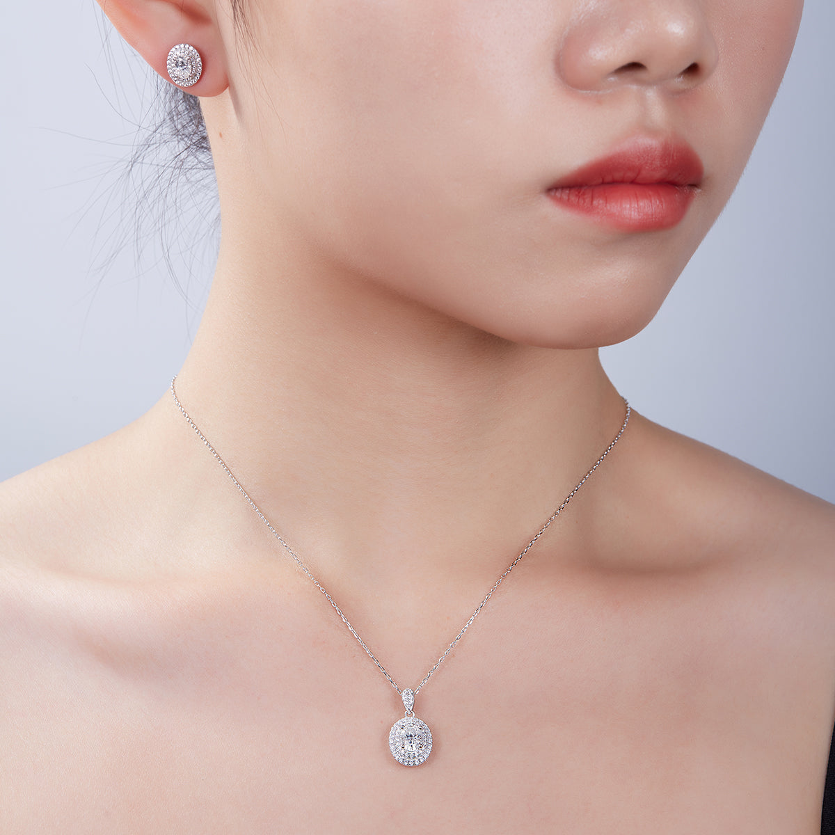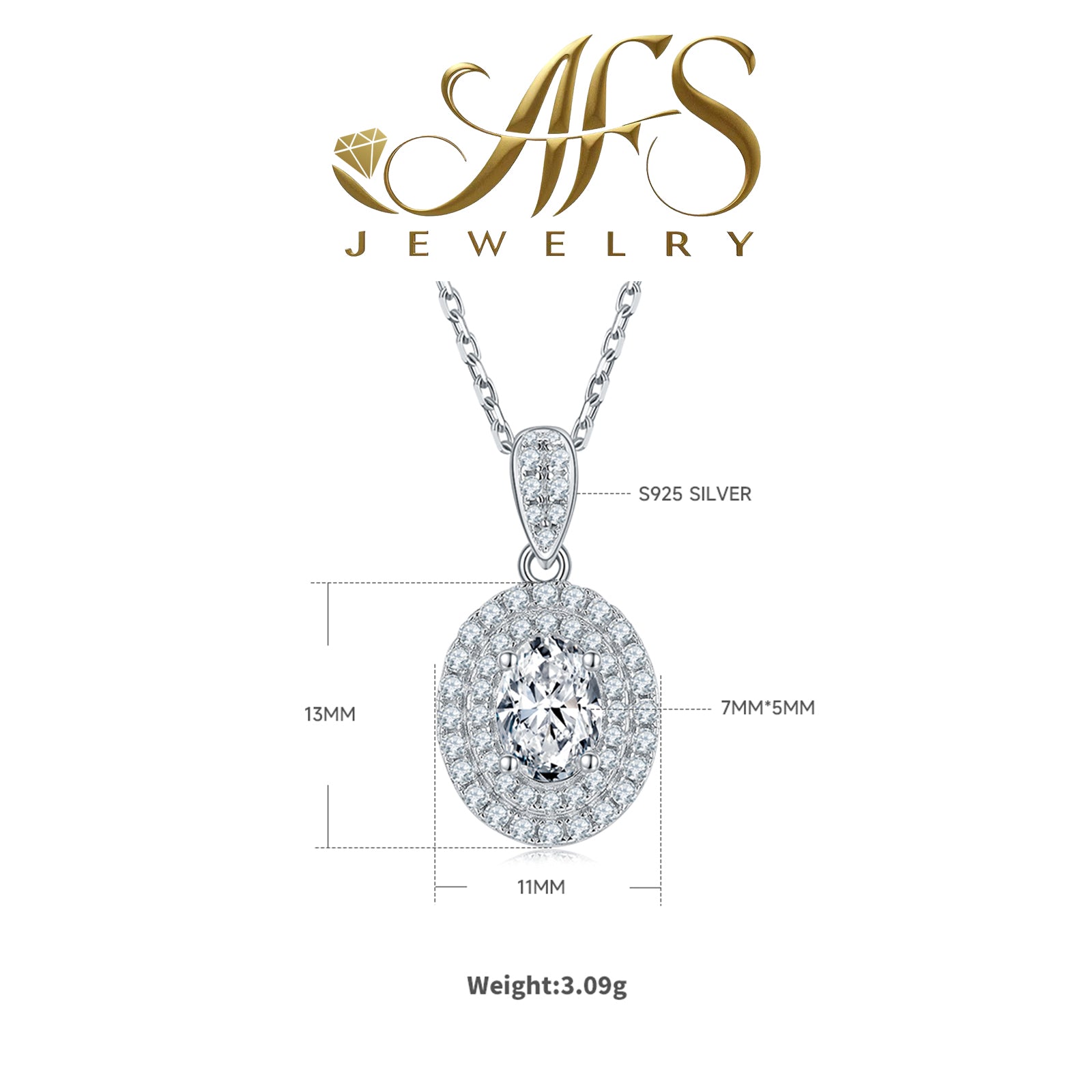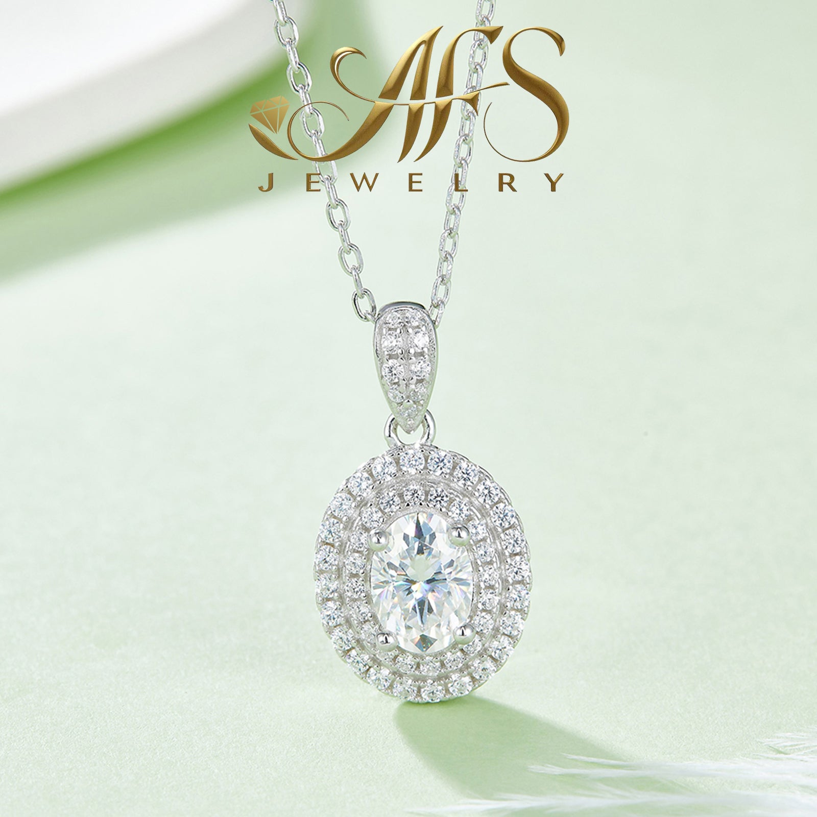 Let morning dew hang at your collarbone — AFS 1.0-carat oval double-halo lavish synthetic moissanite pendant.