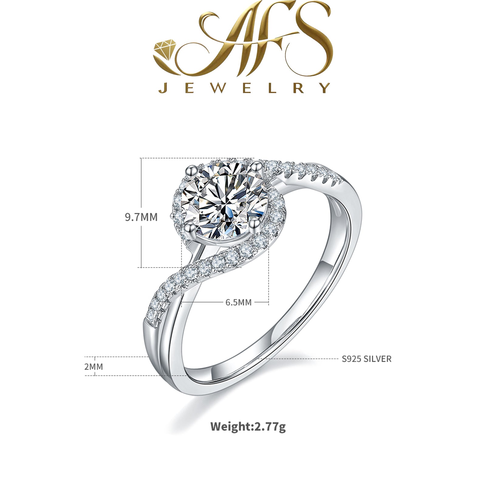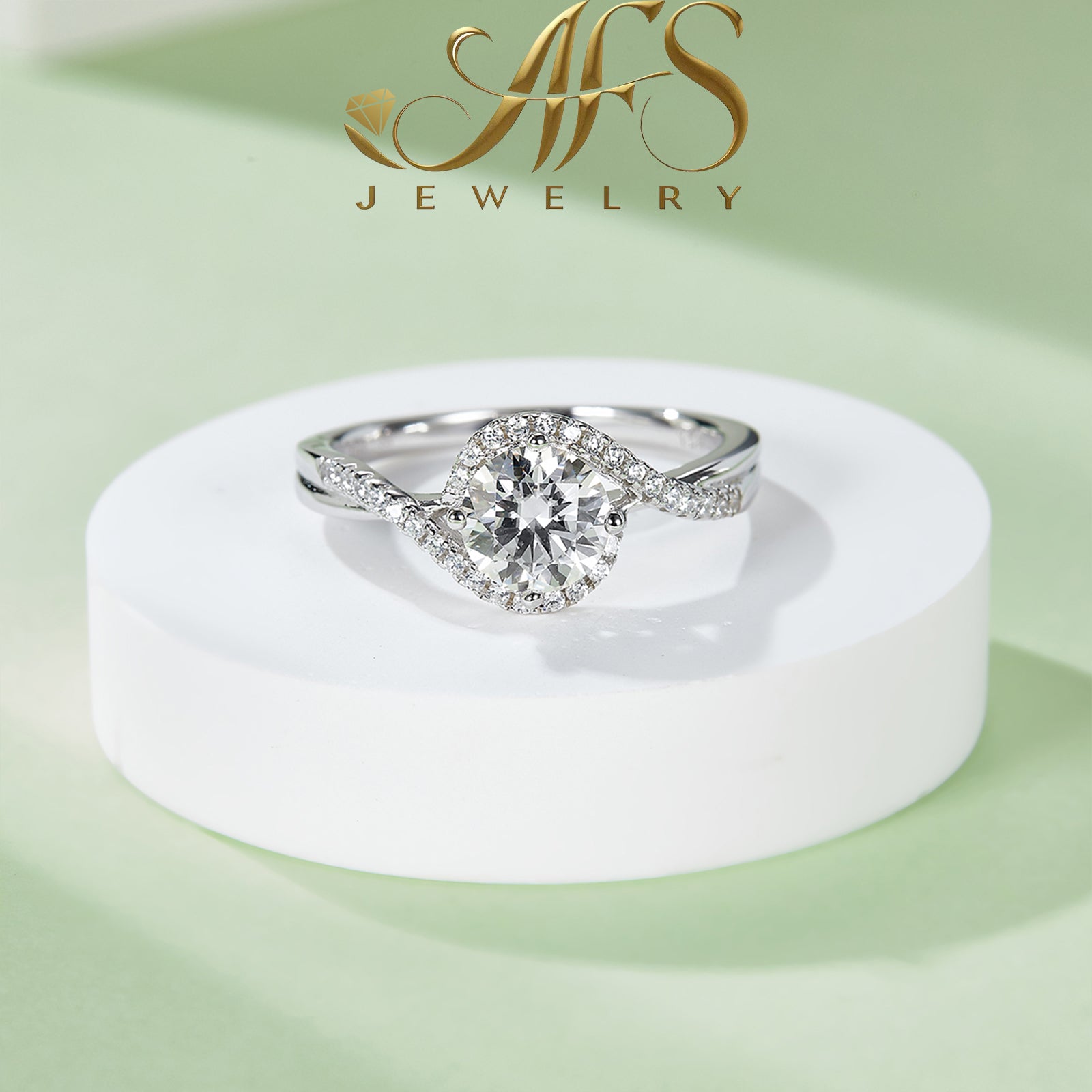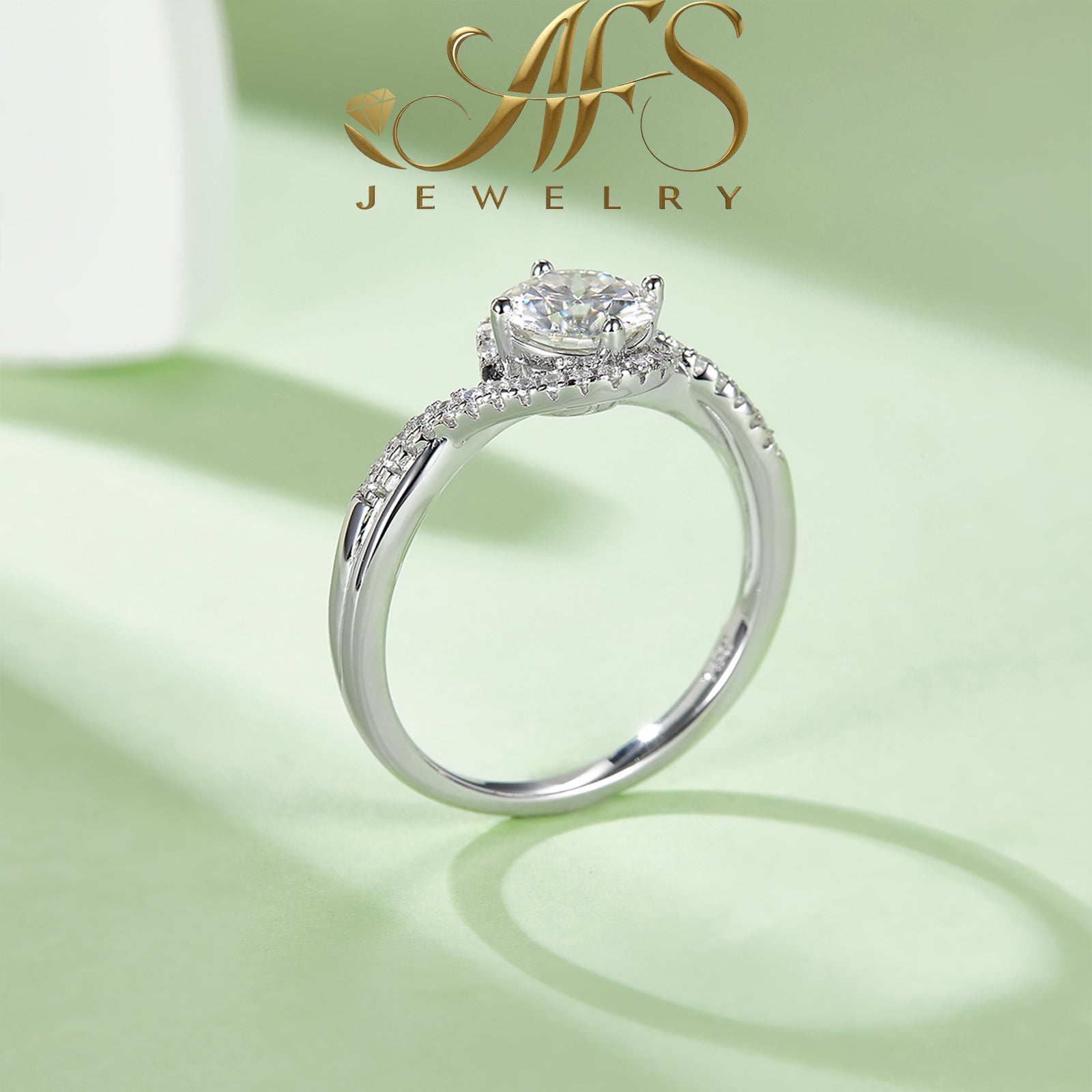 1.0 Carat Round-Cut Angel-Eye Synthetic Moissanite Elegant Ring in Sterling Silver 925 Plated with White Gold for Women Casual Glamour