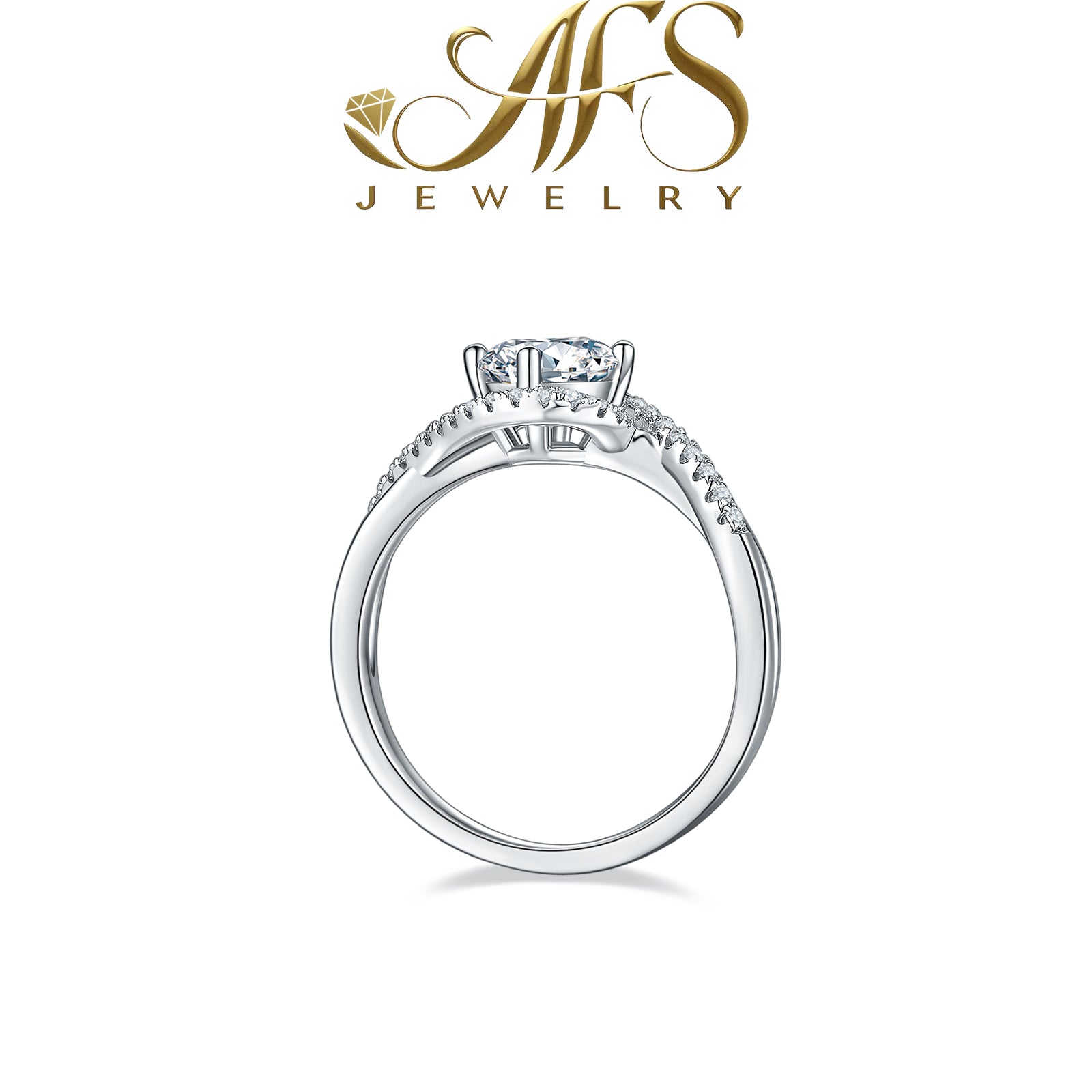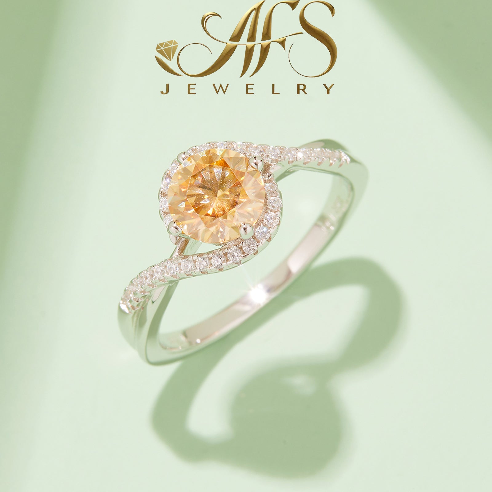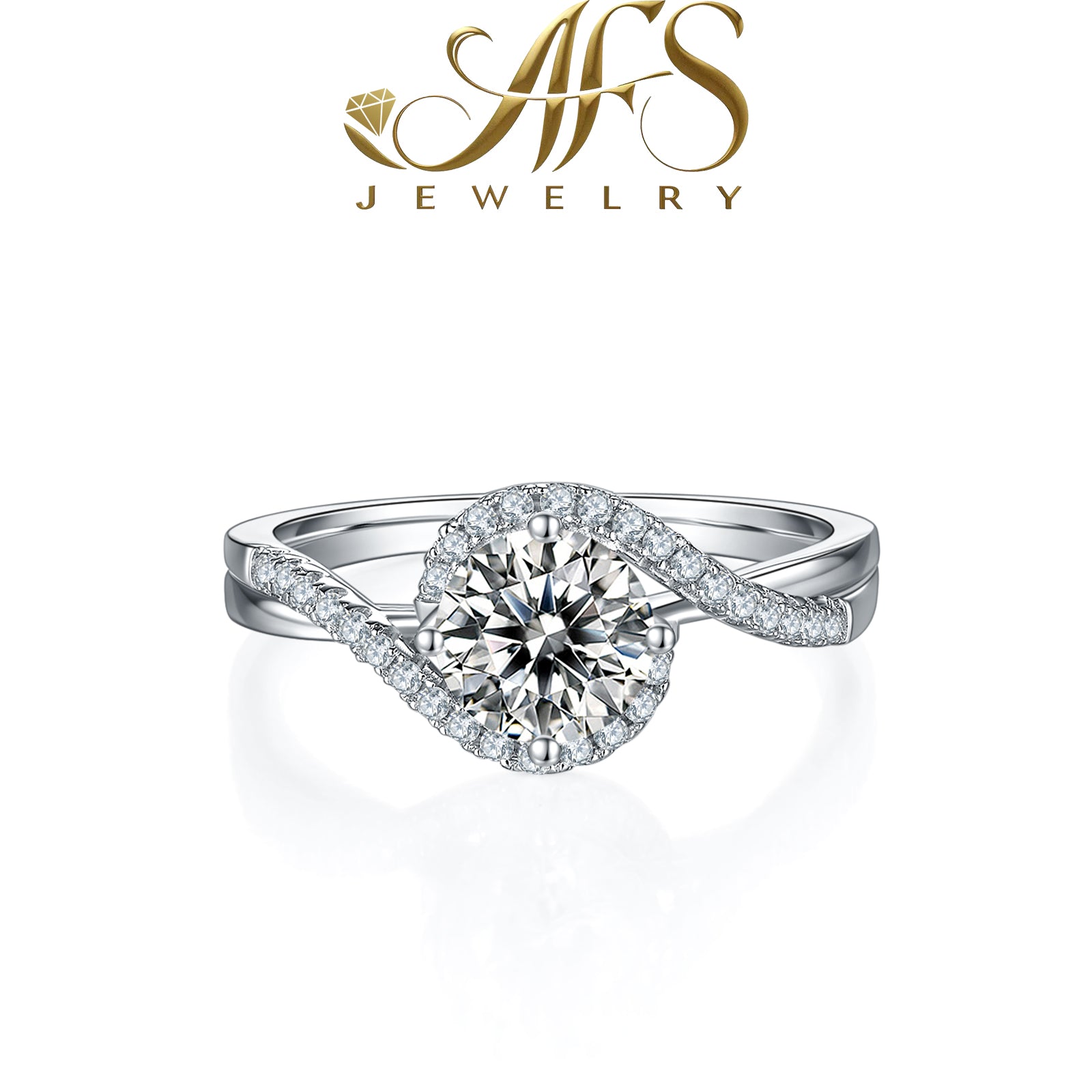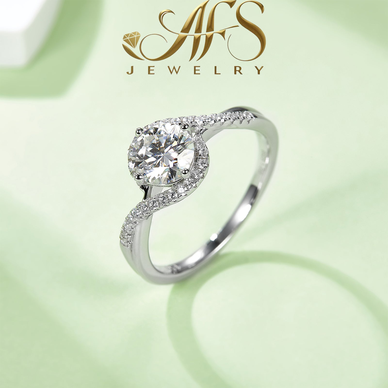 1.0 Carat Round-Cut Angel-Eye Synthetic Moissanite Elegant Ring in Sterling Silver 925 Plated with White Gold for Women Casual Glamour