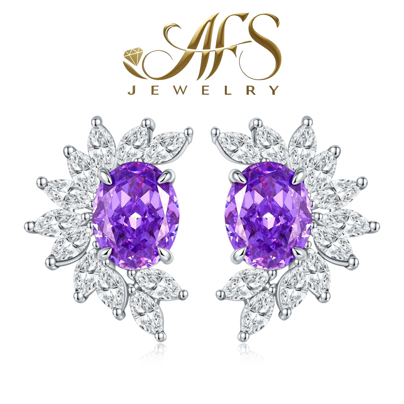 13.0 Carat Oval-Cut Synthetic Moissanite Purple Drop Earrings in Sterling Silver 925 Plated with 18K White Gold for Women Special Events