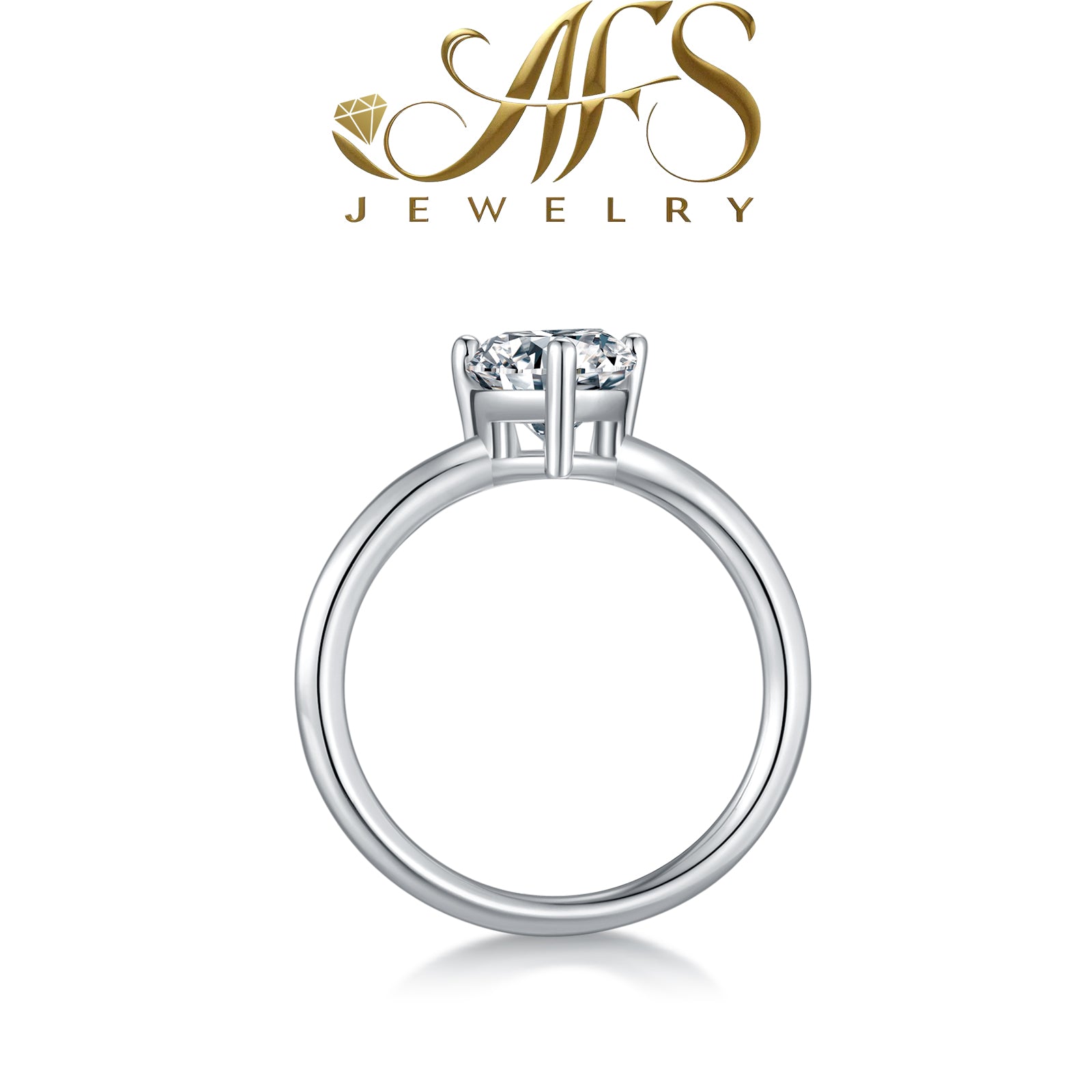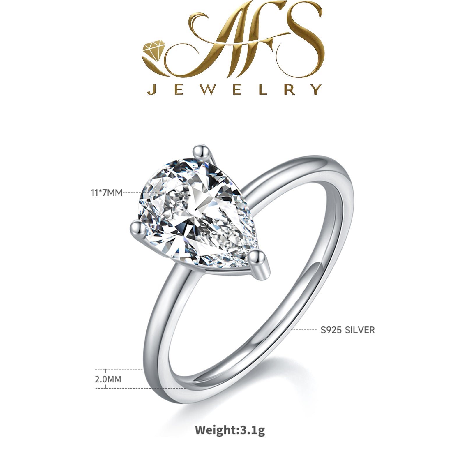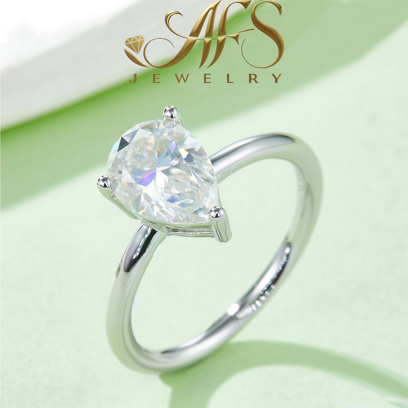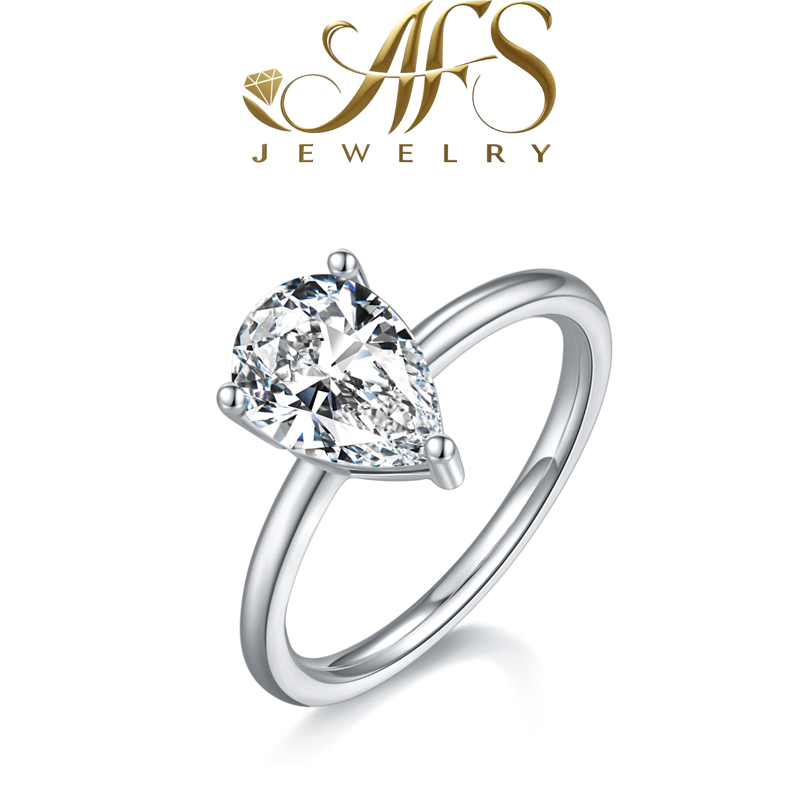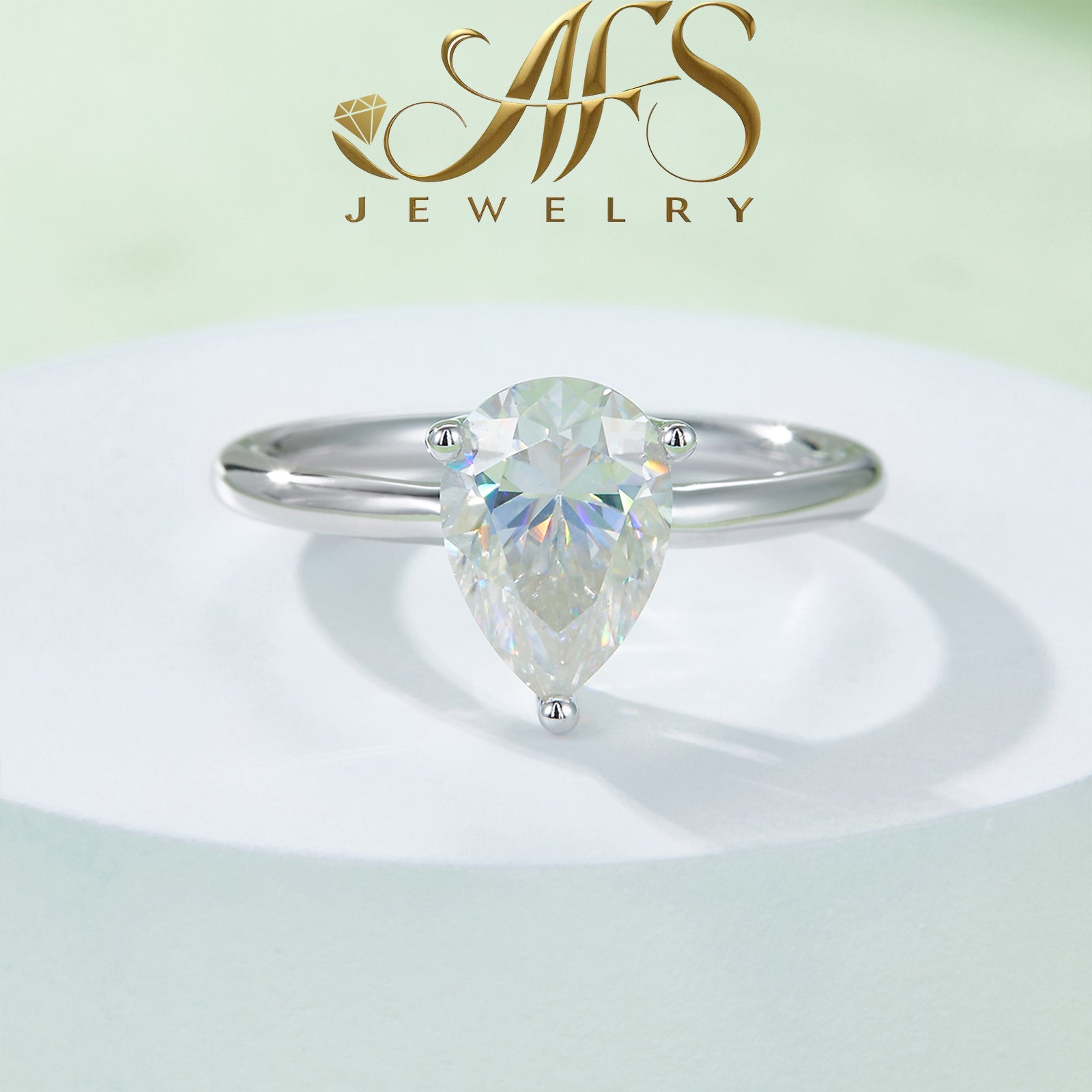 Bask in liquid moonlight with AFS Jewelry’s 3.0-carat pear-cut synthetic moissanite solitaire ring.