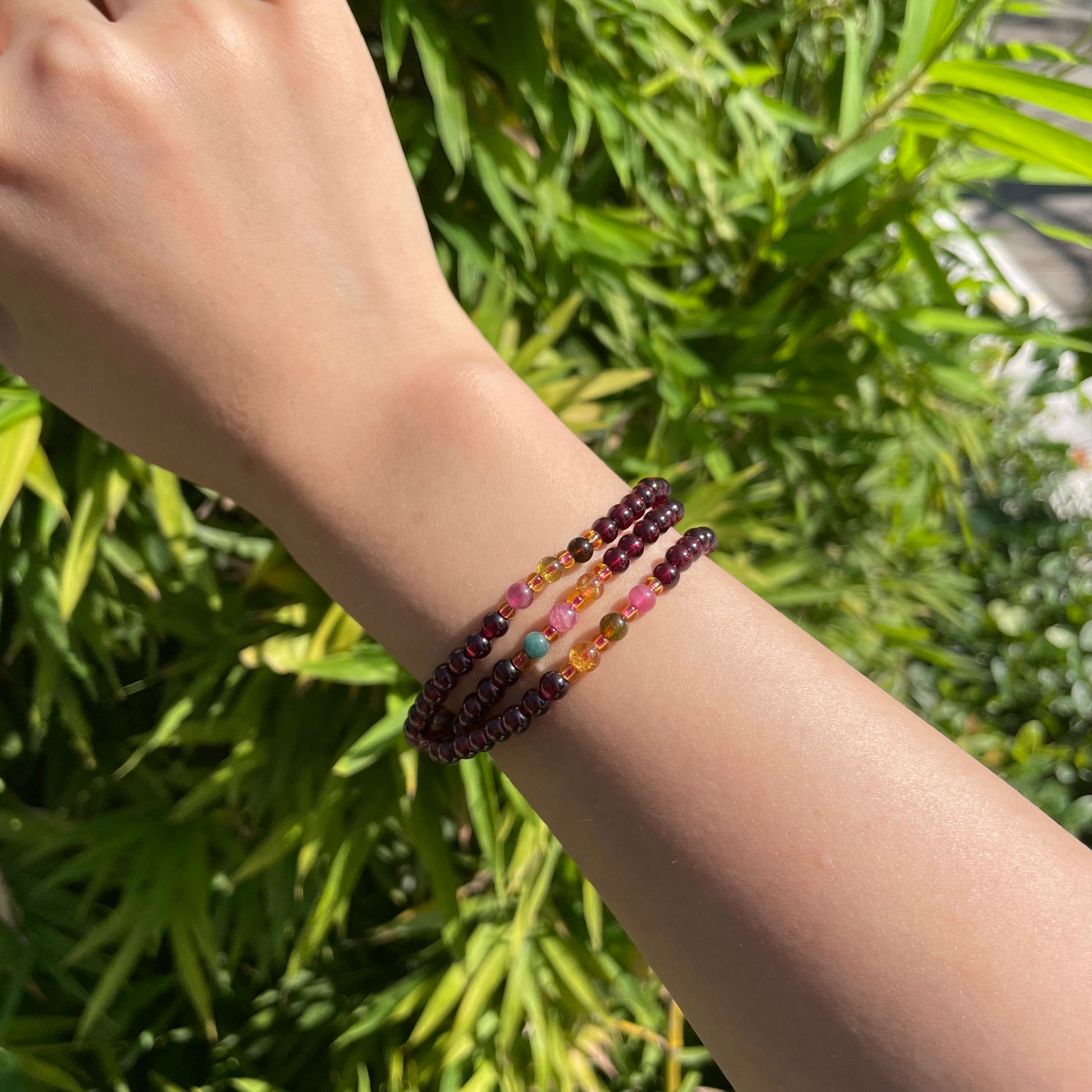 Garnet Tourmaline Bracelet - 3-Circle Energy Matrix - Career Success & Spiritual Protection Talisman