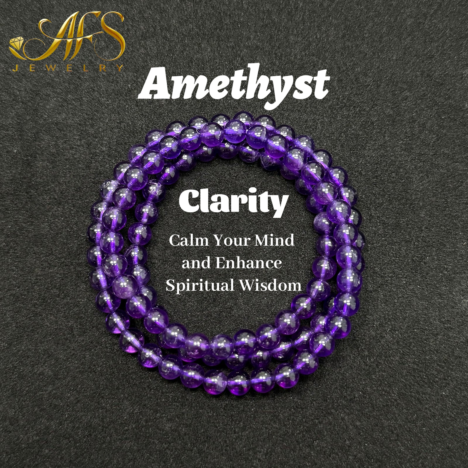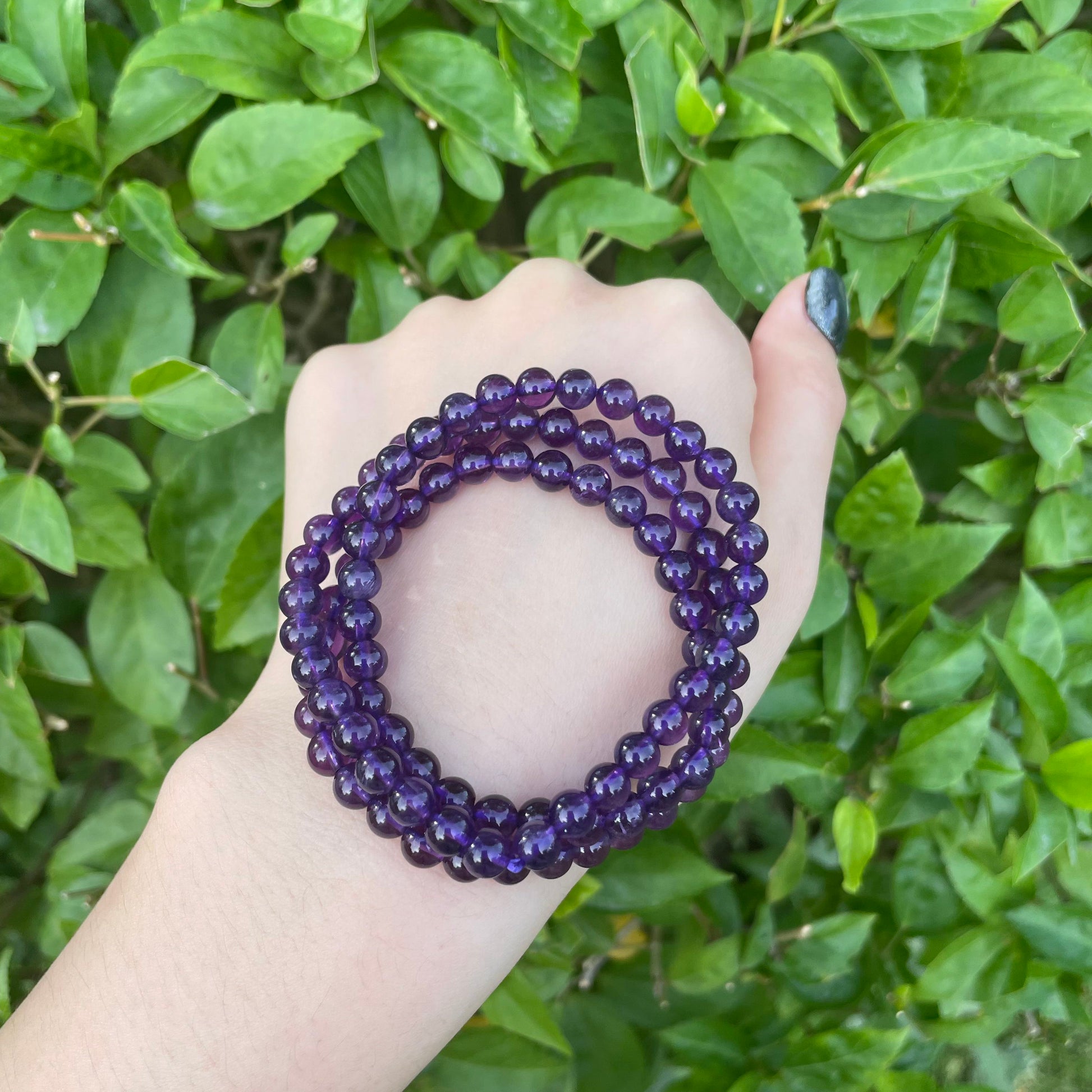 Natural Amethyst Bracelet - Spiritual Protection & Intuition Stone - Crown Chakra Healing & Peaceful Energy