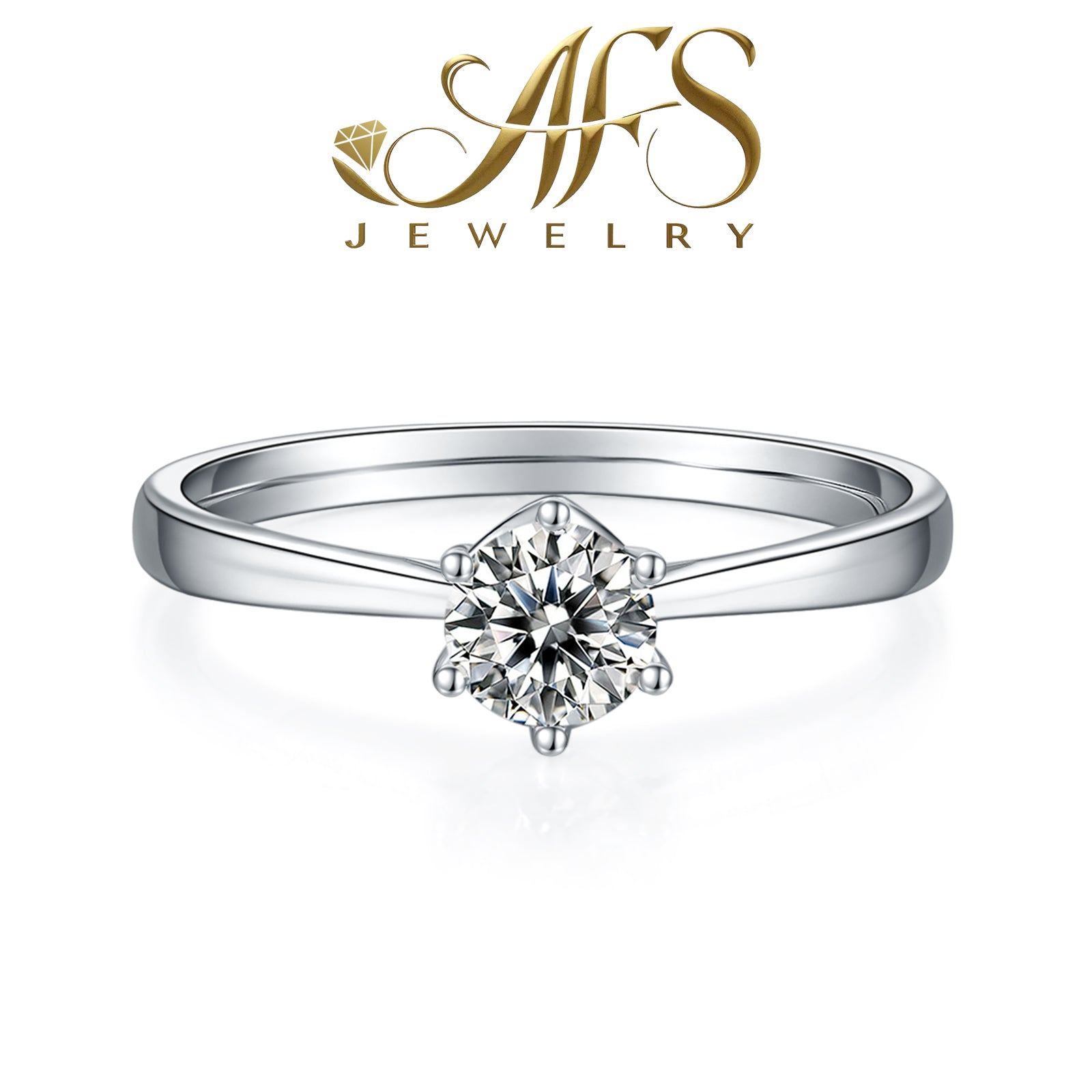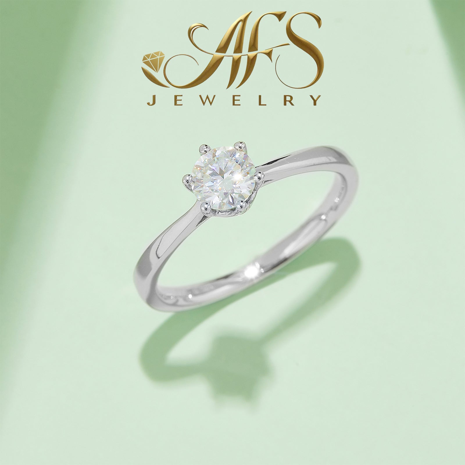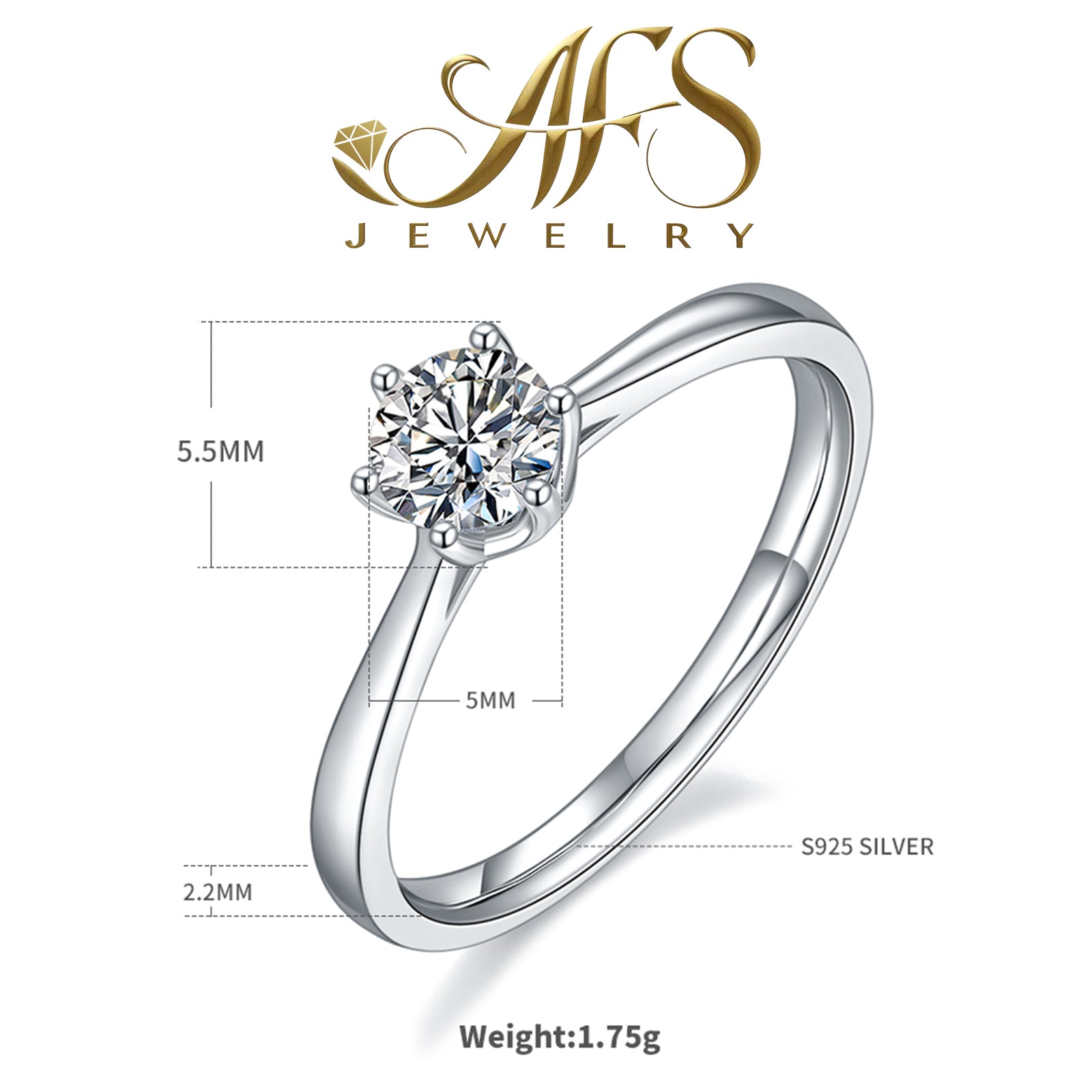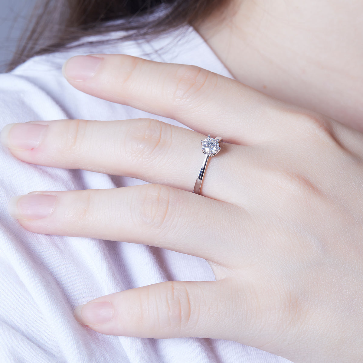 0.5Carat Round-Cut Light-Arm Six-Claw Synthetic Moissanite Minimalist Ring in Sterling Silver 925 Plated with White Gold for Women Casual Glamour