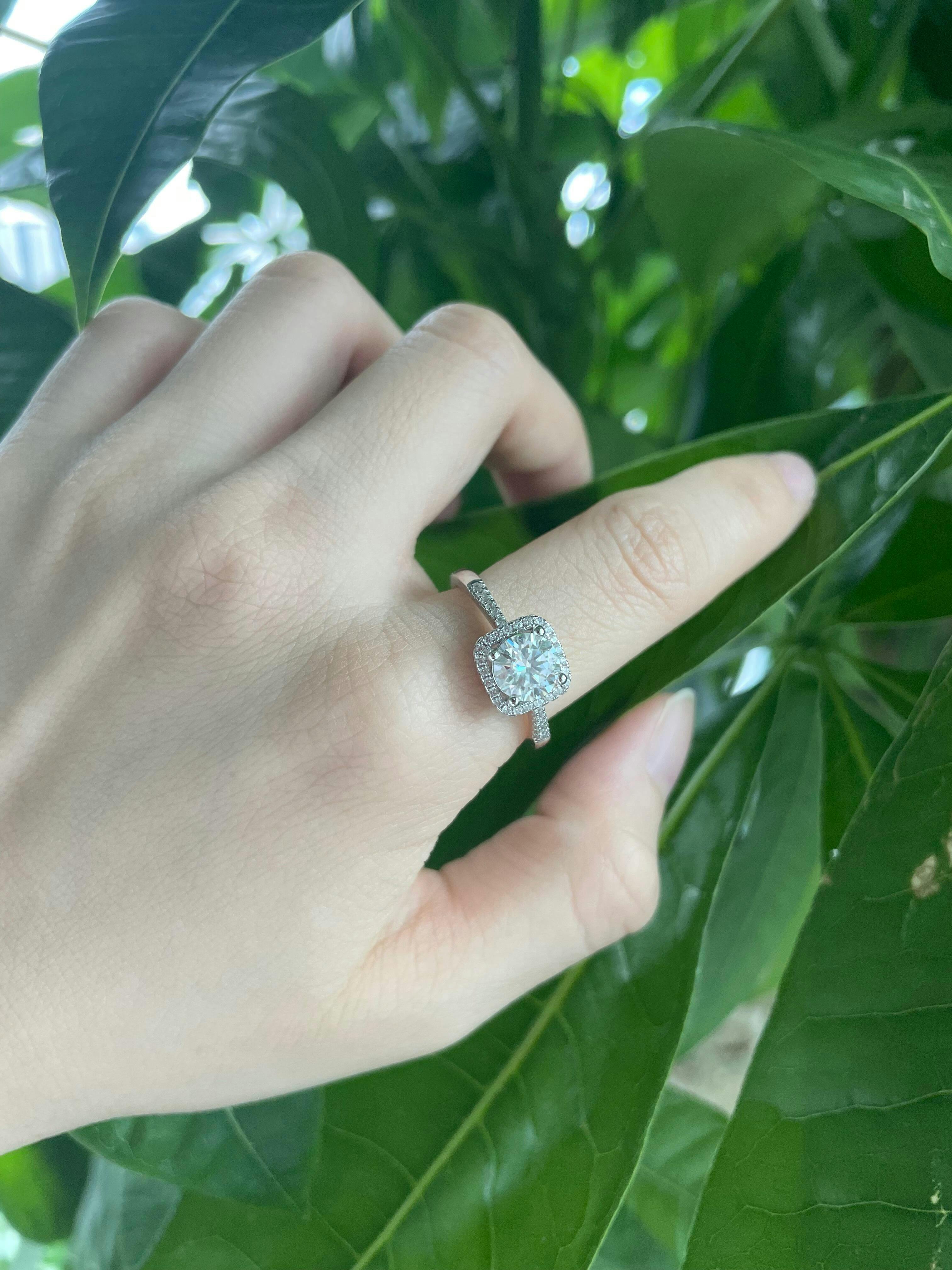 Embrace the harmony of geometry and light with the AFS Square Halo Moissanite Ring—a statement piece designed for the modern woman who values precision, elegance, and timeless design. Inspired by the clean lines of a square courtyard, this ring captures the dance of light between sharp angles and gentle curves, creating a mesmerizing display of brilliance and fire.