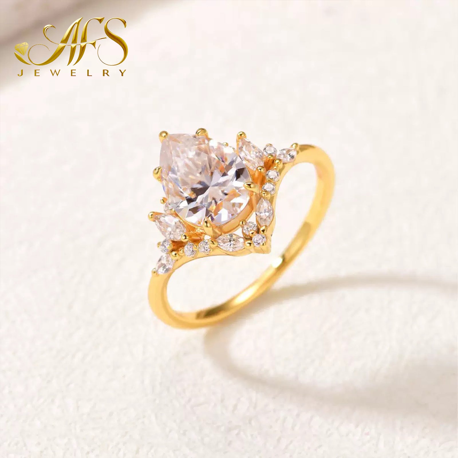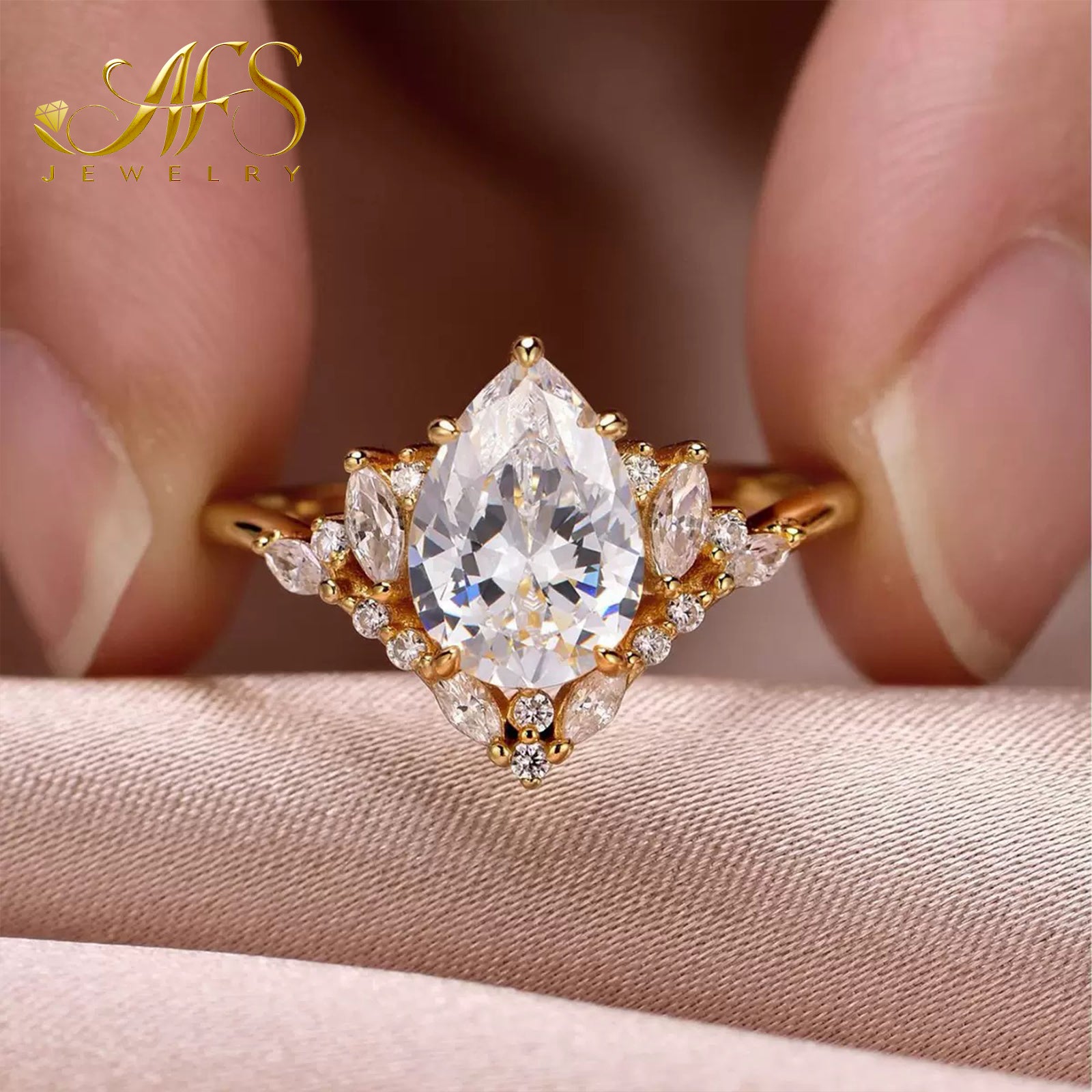 Drape a dewdrop from a royal crown — a 2.0-carat teardrop synthetic moissanite ring.