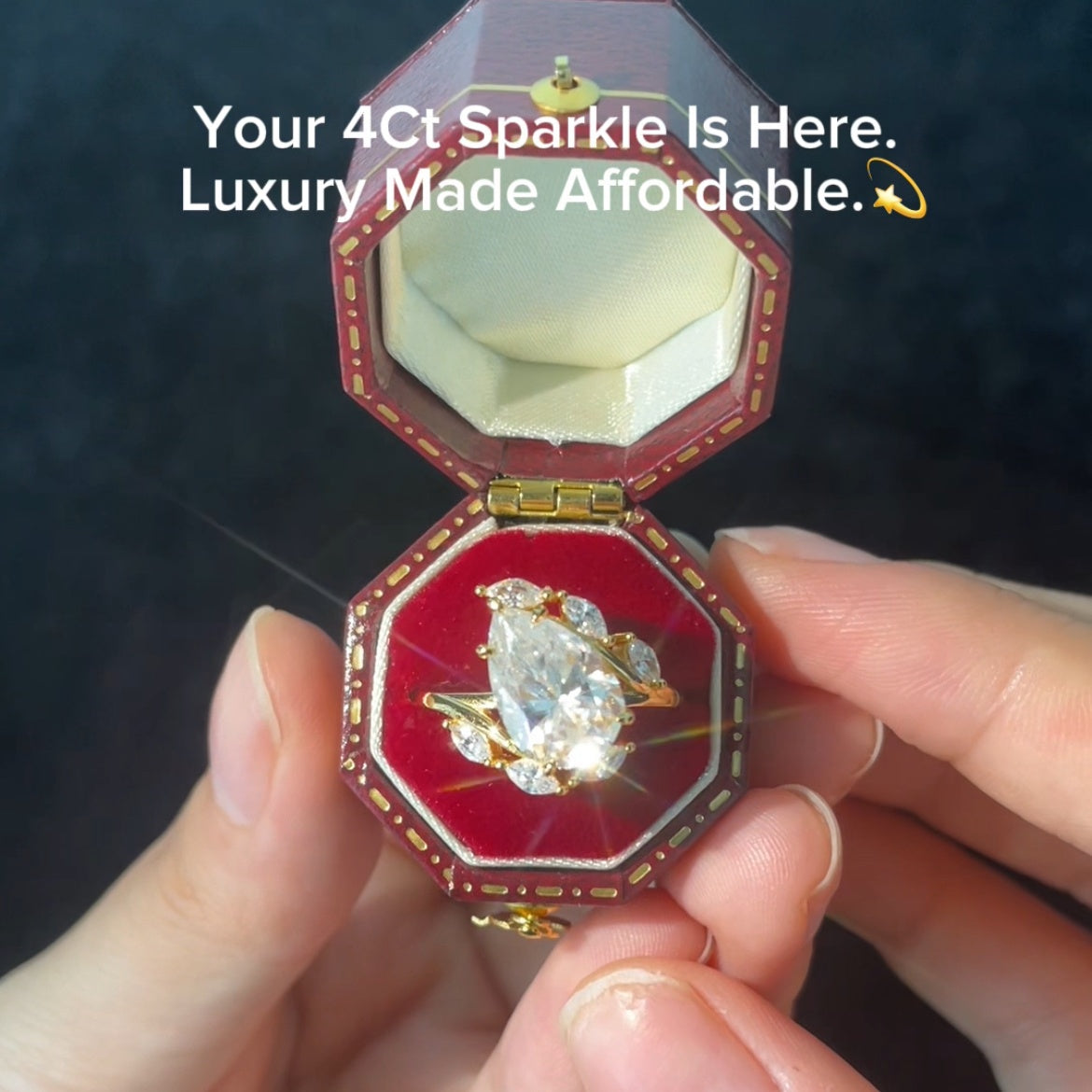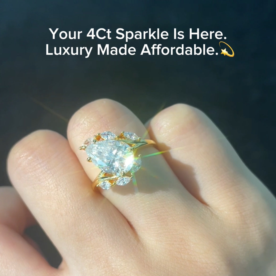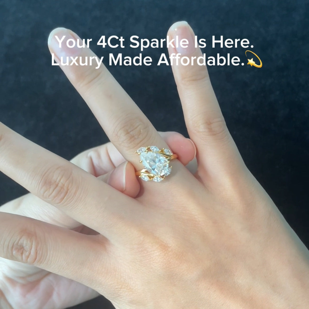 4Carat Teardrop Synthetic Moissanite Engagement Ring 18K Gold-Plated Sterling Silver Luxe