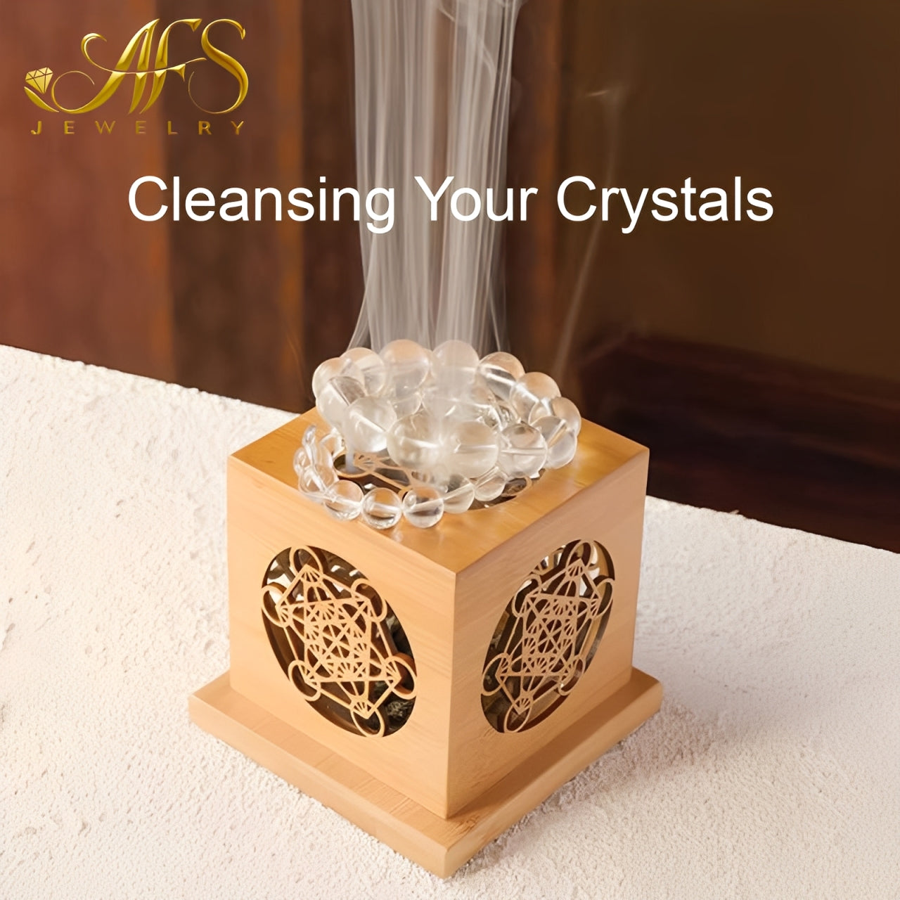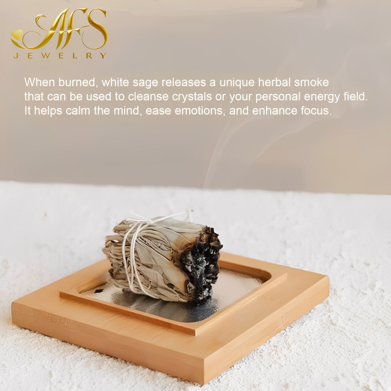 Sage Smudging Kit & Crystal Cleansing Box with Bamboo Burn Bowl and Heat-Resistant Hollow Lid, Wooden Aromatherapy Set for Energy Clearing, Meditation, and Spiritual Use